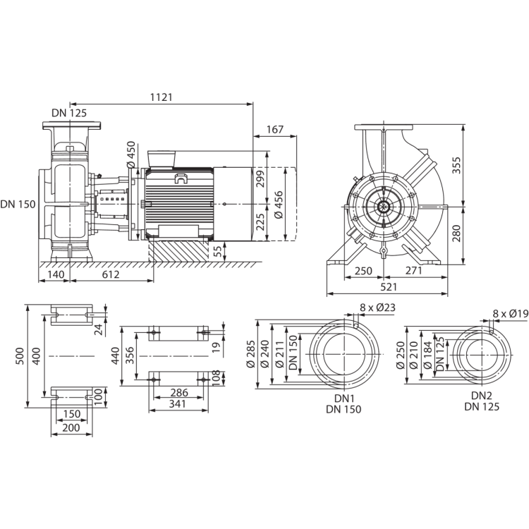 Допустимый диапазон температур перекачиваемой жидкости от -20° C до +140° CЭлектроподключение к сети 3~400 В, 50 Гц (другие по запросу)Класс защиты IP55Номинальный диаметр от DN 32 до DN 150Макс. рабочее давление 16 бар (опционально 25 бар по запросу)