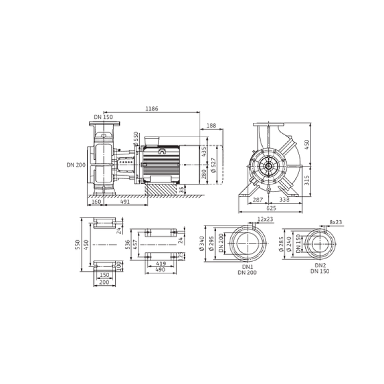 - Корпус насоса и фонарь: Стандартное исполнение: EN-GJL-250; опционально: Чугун с шаровидным графитом EN-GJS-400-18-LT (в зависимости от типа)