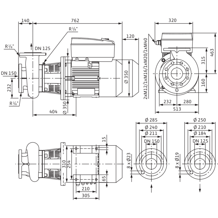 - Спиральный корпус блочного типа с размерами фланцев и корпуса согласно DIN EN 733, а также фланцами PN 16 согласно EN 1092-2