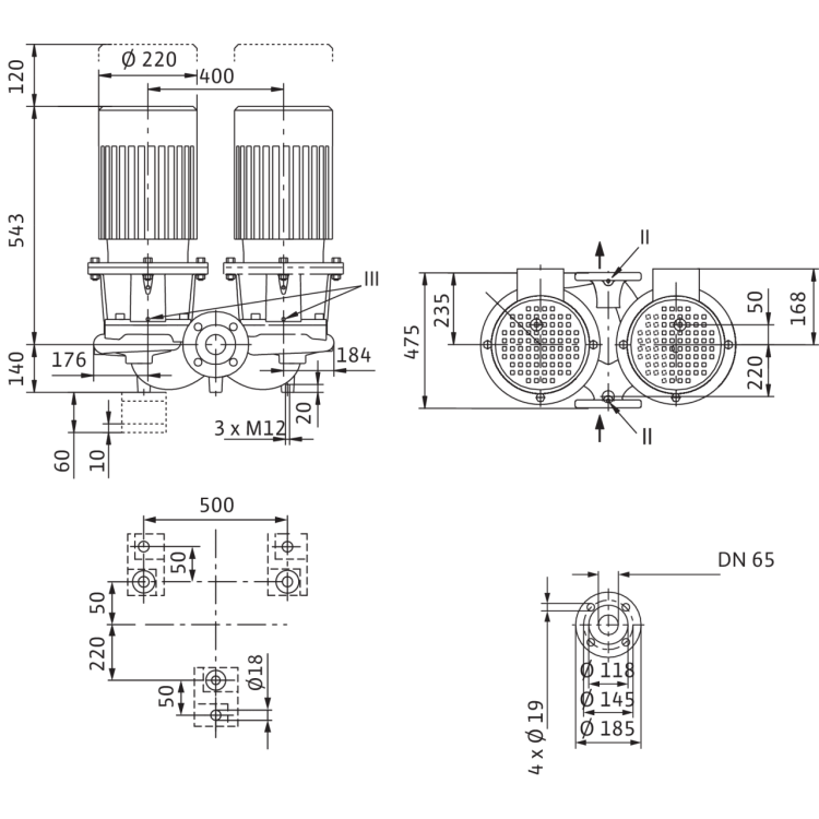 Сдвоенный насос с сухим ротором в исполнении Inline с фланцевым соединением