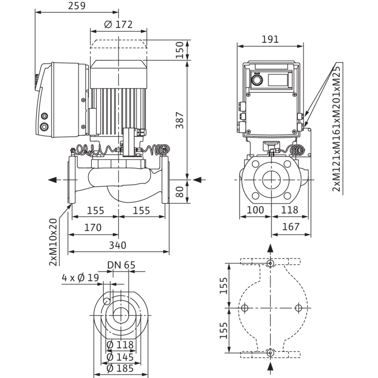 Циркуляционный насос с сухим ротором в исполнении Inline Wilo VeroLine-IP-E 65/115-1,5/2