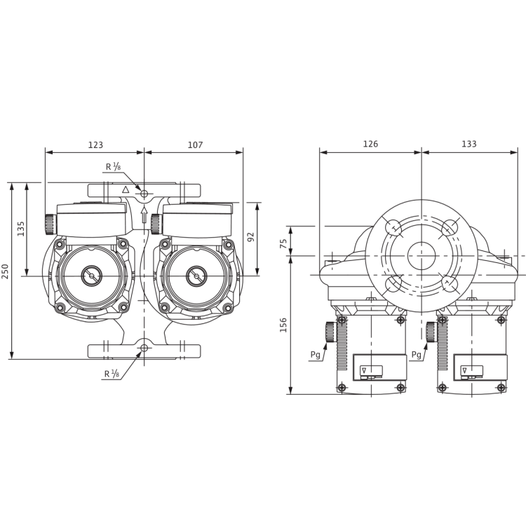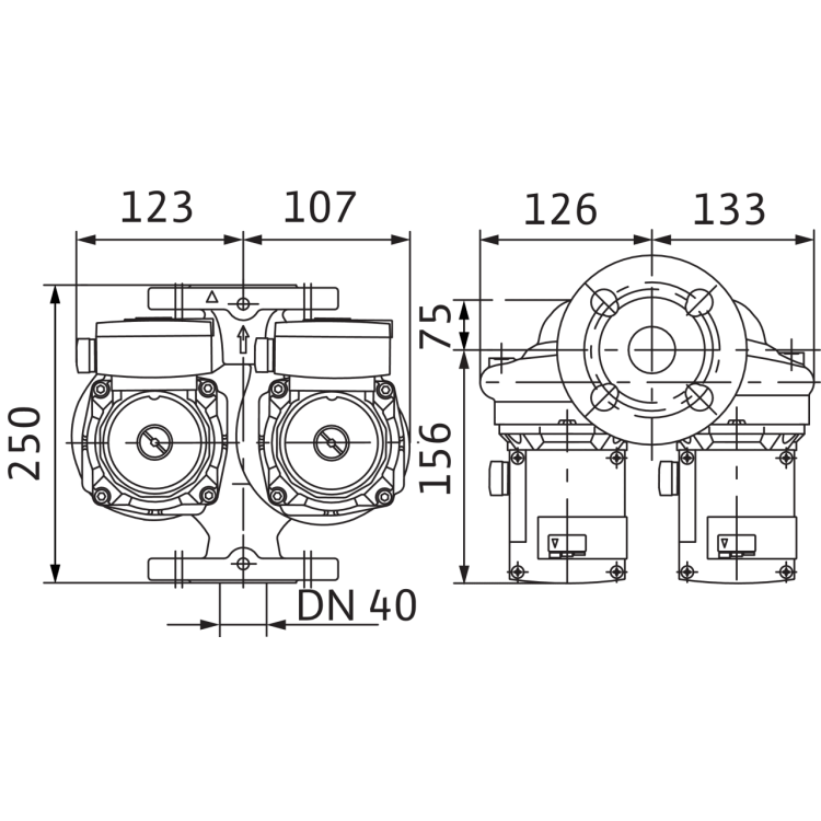 Не требующий обслуживания сдвоенный насос с мокрым ротором с резьбовым или фланцевым подсоединением; возможен выбор ступеней частоты вращения.