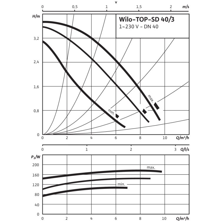 • Настройка ступеней частоты вращения: 3 ступени частоты вращения (2 ступени частоты вращения у 1-фазных насосов с P≥ 350 Вт)