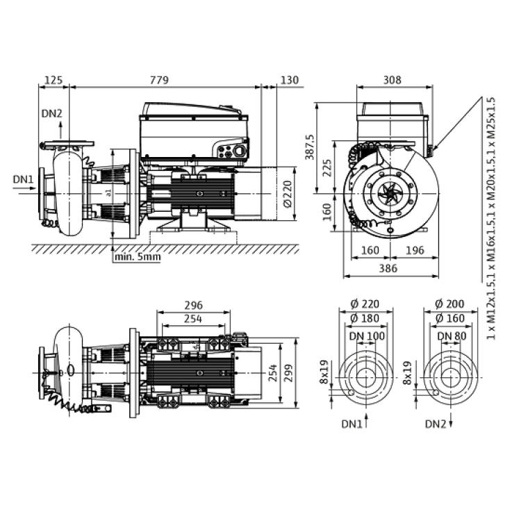 - Одноступенчатый низконапорный насос с неразъемным валом блочной конструкции, включая опору на корпусе насоса