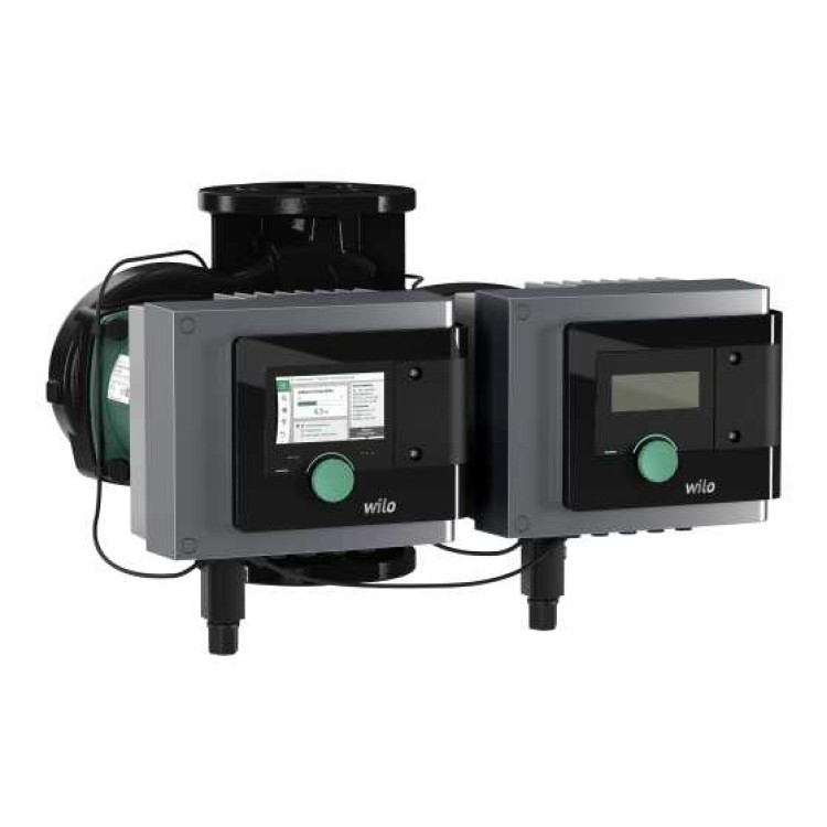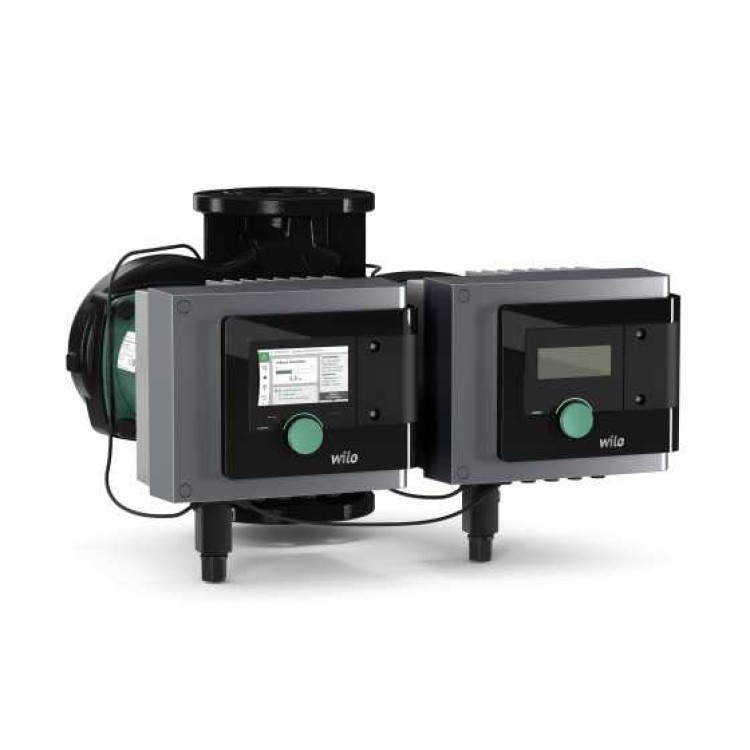 Умный циркуляционный сдвоенный насос с мокрым ротором, резьбовым или фланцевым соединением, электронно-коммутируемым двигателем со встроенной электронной регулировкой мощности.
