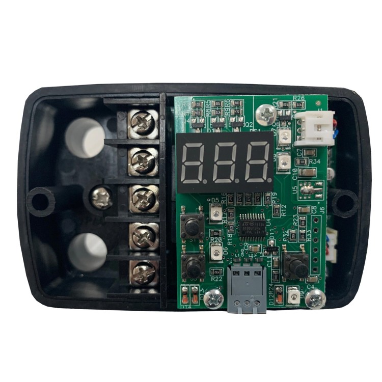 Прибор управляет работой насоса путем старта по заданному давлению от 0,5 до 7,5 бар и останавливает работу насоса по заданному давлению от 1 до 8 бар (выставляется на корпусе кнопками без входа в режим программирования). Пример: запуск насоса - 2 атм., остановка насоса - 3 атм.
