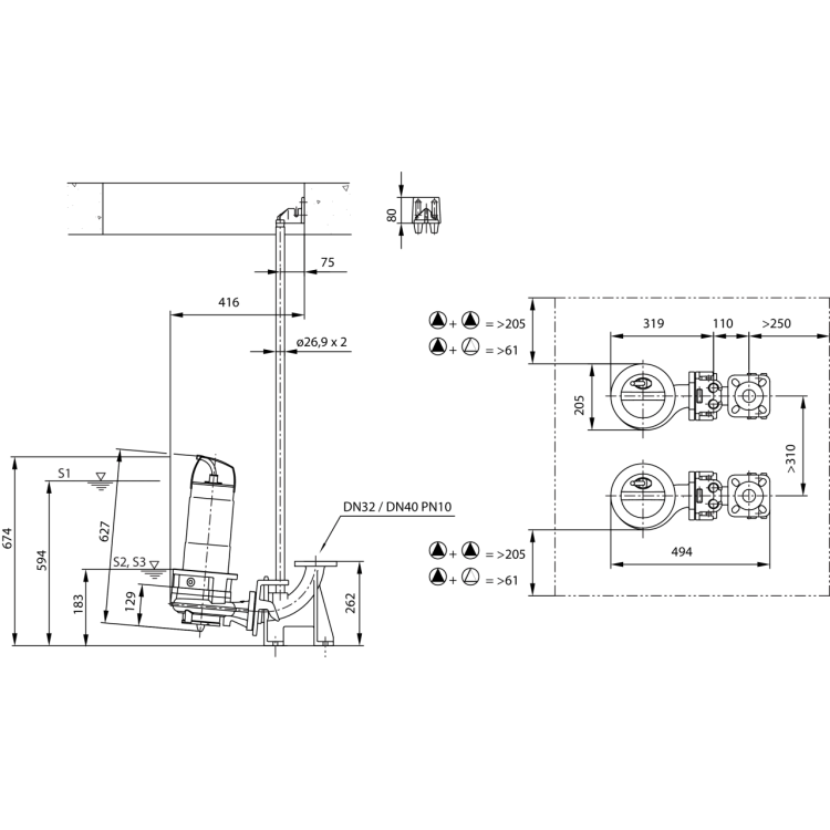 Тип Погружной дренажный насос для отвода сточных вод с режущим механизмом для повторно-кратковременного и непрерывного режима эксплуатации для стационарной и мобильной установки в погруженном состоянии. | ||||||||||||||||||||||||||||