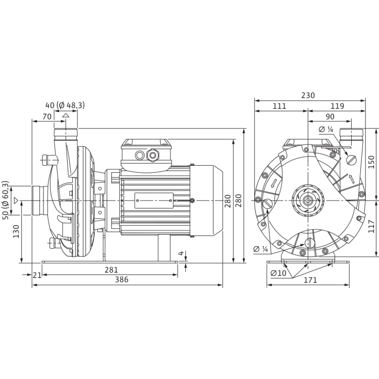 Одноступенчатый низконапорный центробежный насос в блочном исполнении с аксиальным всасывающим патрубком и радиально расположенным напорным патрубком.