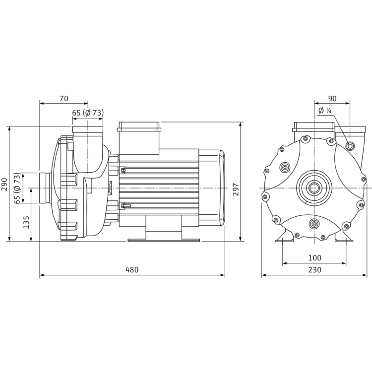 Одноступенчатый низконапорный центробежный насос в блочном исполнении с аксиальным всасывающим патрубком и радиально расположенным напорным патрубком.