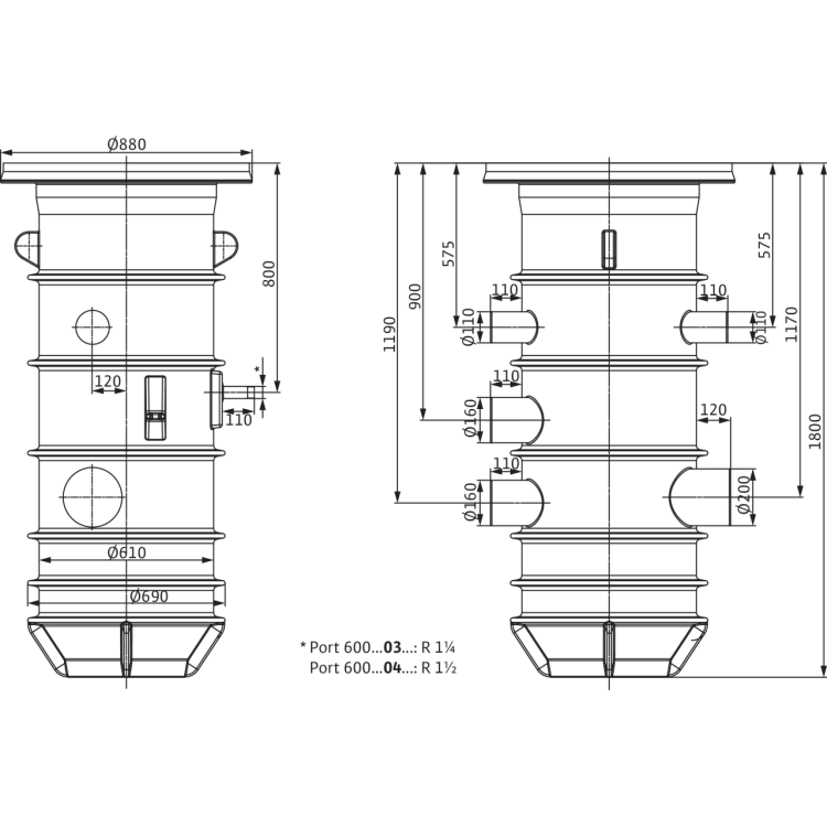 Насосная шахта из синтетического материала для установки в грунт Wilo Port 600.1-1800-03E