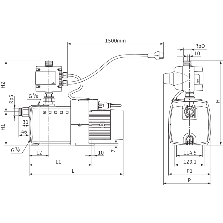 Многоступенчатый горизонтальный центробежный насос с сухим ротором, самовсасывающий, с непосредственно прифланцованным электродвигателем и автоматической системой управления насосом HiControl 1. Не требующее техобслуживания скользящее торцовое уплотнение в месте прохода вала.