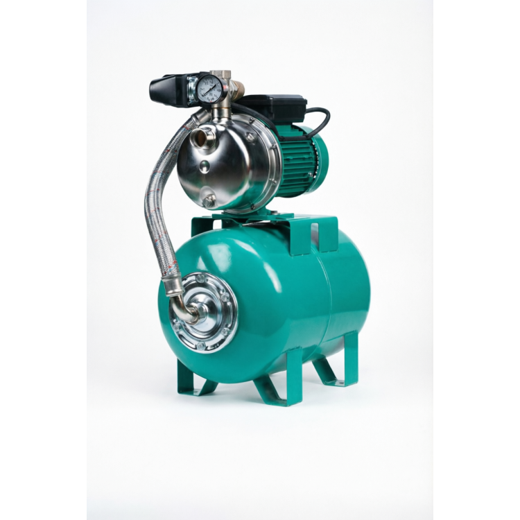 Система управления насосом с управляющим агрегатом и мембранным напорным баком, манометрическим выключателем и манометром (0–6 бар). Все детали, находящиеся в контакте с перекачиваемой средой, не подвержены коррозии.