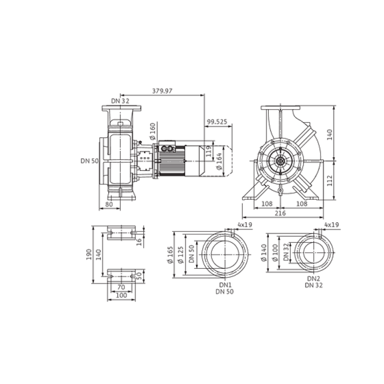 Одноступенчатый центробежный насос с сухим ротором блочного типа для установки на фундаменте. Блочное исполнение с низким уровнем шума и вибрации с промежуточным корпусом и неподвижно присоединенным унифицированным (стандартным) электродвигателем. С не зависящим от направления вращения сильфонным скользящим торцевым уплотнением с принудительным омыванием (начиная с исполнения «37 кВт/4 полюса» — опционально с картриджным торцевым уплотнением в системе Back-Pull-Out для замены скользящего торцевого уплотнения без демонтажа электродвигателя) и снижающим кавитацию рабочим колесом. Фланцы со штуцерами для измерения давления R 1/8. Корпус насоса и фонарь имеют катафорезное покрытие. Серийные электродвигатели с технологией IE3. Насосы с электродвигателями ≥ 5,5 кВт серийно оснащаются термодатчиком для защиты электродвигателя. Клеммная коробка электродвигателя ≤ 7,5 кВт может быть изготовлена из металла или синтетического материала. Если для электродвигателя требуется металлическая клеммная коробка, закажите соответствующее специальное исполнение. Клеммные коробки электродвигателя > 7,5 кВт всегда из металла.