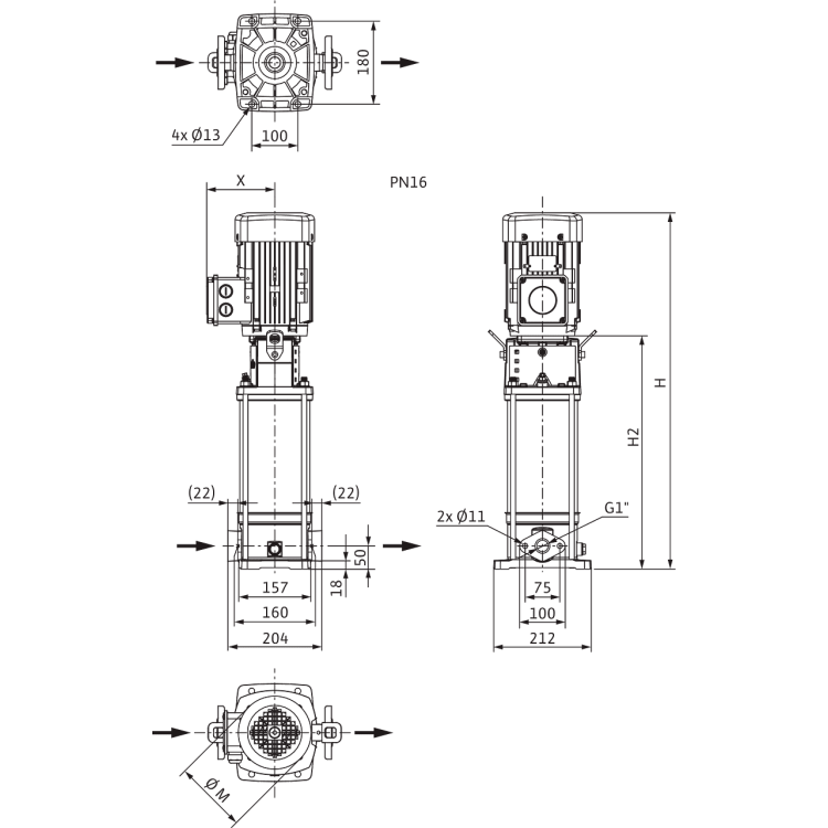 Вертикальный многоступенчатый насос Wilo HELIX V402-1/16/E/S/1-230-50