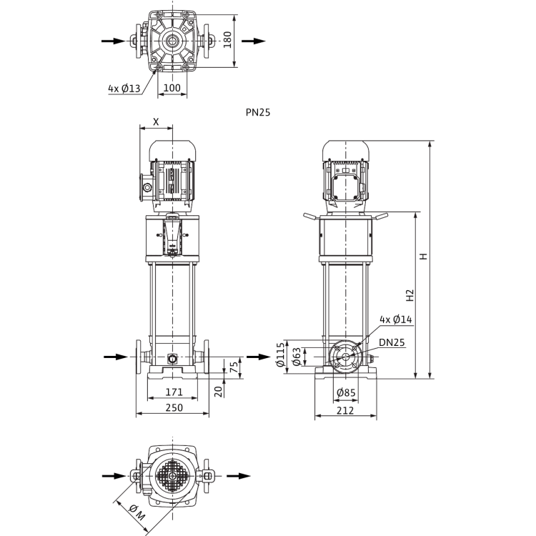 Вертикальный высоконапорный центробежный насос во встраиваемом исполнении (F) = исполнение насоса с сертификатом VdS |