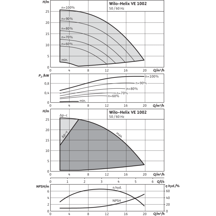 Общие указания – директивы ErP (экологический дизайн) Базовое значение MEI для насосов с оптимальным КПД ≥ 0,70.КПД насоса с откорректированным рабочим колесом, как правило, ниже КПД насоса с полным диаметром рабочего колеса. За счет корректировки рабочего колеса насос настраивается на определенную рабочую точку, в результате чего снижается энергопотребление. Индекс минимальной эффективности (MEI) относится к полному диаметру рабочего колеса.При различных рабочих точках данный насос может работать эффективнее и экономичнее, если, например, управление его работой осуществляется путем регулирования переменной частоты вращения, благодаря которому насос адаптируется к характеристикам соответствующей системы.Информацию по базовому значению эффективности см. на интернет-странице www.europump.org/efficiencycharts.На насосы, потребляющие мощность > 150 кВт, или имеющие подачу QBEP < 6 м3/ч, не распространяются требования по экологическому проектированию водяных насосов. Поэтому значение MEI не указывается. |