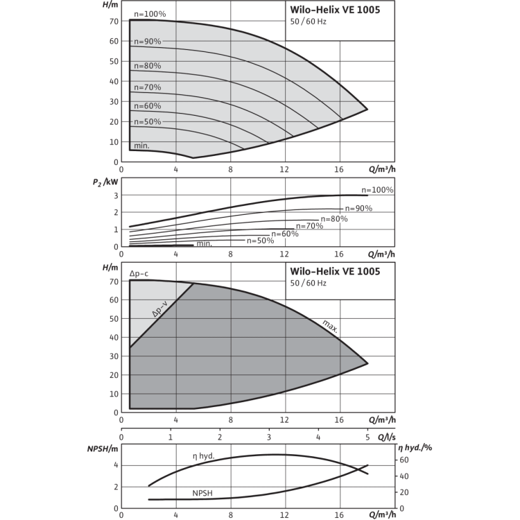 Общие указания – директивы ErP (экологический дизайн) Базовое значение MEI для насосов с оптимальным КПД ≥ 0,70.КПД насоса с откорректированным рабочим колесом, как правило, ниже КПД насоса с полным диаметром рабочего колеса. За счет корректировки рабочего колеса насос настраивается на определенную рабочую точку, в результате чего снижается энергопотребление. Индекс минимальной эффективности (MEI) относится к полному диаметру рабочего колеса.При различных рабочих точках данный насос может работать эффективнее и экономичнее, если, например, управление его работой осуществляется путем регулирования переменной частоты вращения, благодаря которому насос адаптируется к характеристикам соответствующей системы.Информацию по базовому значению эффективности см. на интернет-странице www.europump.org/efficiencycharts.На насосы, потребляющие мощность > 150 кВт, или имеющие подачу QBEP < 6 м3/ч, не распространяются требования по экологическому проектированию водяных насосов. Поэтому значение MEI не указывается. |