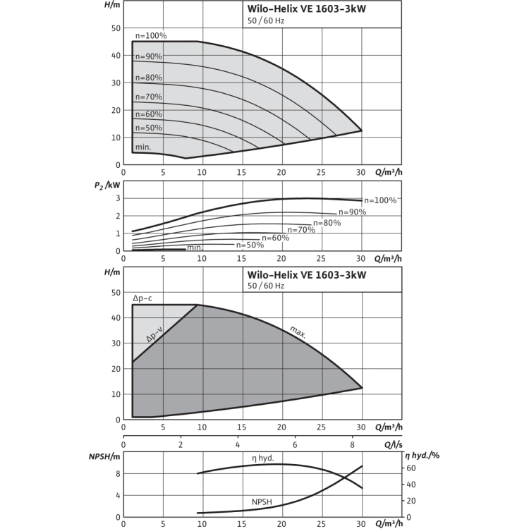 Общие указания – директивы ErP (экологический дизайн) Базовое значение MEI для насосов с оптимальным КПД ≥ 0,70.КПД насоса с откорректированным рабочим колесом, как правило, ниже КПД насоса с полным диаметром рабочего колеса. За счет корректировки рабочего колеса насос настраивается на определенную рабочую точку, в результате чего снижается энергопотребление. Индекс минимальной эффективности (MEI) относится к полному диаметру рабочего колеса.При различных рабочих точках данный насос может работать эффективнее и экономичнее, если, например, управление его работой осуществляется путем регулирования переменной частоты вращения, благодаря которому насос адаптируется к характеристикам соответствующей системы.Информацию по базовому значению эффективности см. на интернет-странице www.europump.org/efficiencycharts.На насосы, потребляющие мощность > 150 кВт, или имеющие подачу QBEP < 6 м3/ч, не распространяются требования по экологическому проектированию водяных насосов. Поэтому значение MEI не указывается. |