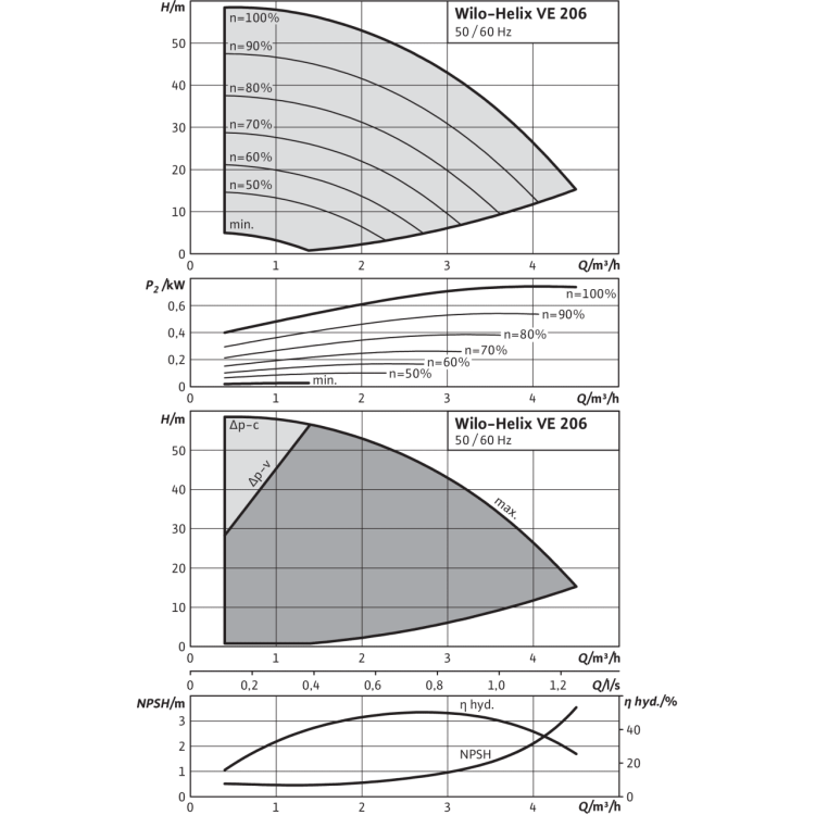 Общие указания – директивы ErP (экологический дизайн) Базовое значение MEI для насосов с оптимальным КПД ≥ 0,70.КПД насоса с откорректированным рабочим колесом, как правило, ниже КПД насоса с полным диаметром рабочего колеса. За счет корректировки рабочего колеса насос настраивается на определенную рабочую точку, в результате чего снижается энергопотребление. Индекс минимальной эффективности (MEI) относится к полному диаметру рабочего колеса.При различных рабочих точках данный насос может работать эффективнее и экономичнее, если, например, управление его работой осуществляется путем регулирования переменной частоты вращения, благодаря которому насос адаптируется к характеристикам соответствующей системы.Информацию по базовому значению эффективности см. на интернет-странице www.europump.org/efficiencycharts.На насосы, потребляющие мощность > 150 кВт, или имеющие подачу QBEP < 6 м3/ч, не распространяются требования по экологическому проектированию водяных насосов. Поэтому значение MEI не указывается. |