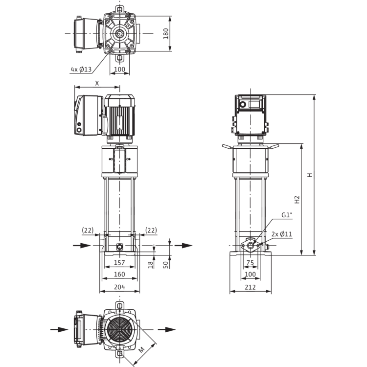 Высокоэффективный высоконапорный центробежный насос вертикального исполнения с линейными подсоединениями, электродвигателем класса IE4 согласно IEC и с встроенным частотным преобразователем с воздушным охлаждением. Встроенный частотный преобразователь позволяет осуществлять плавную регулировку частоты вращения, давления и ПИД-регулировку.