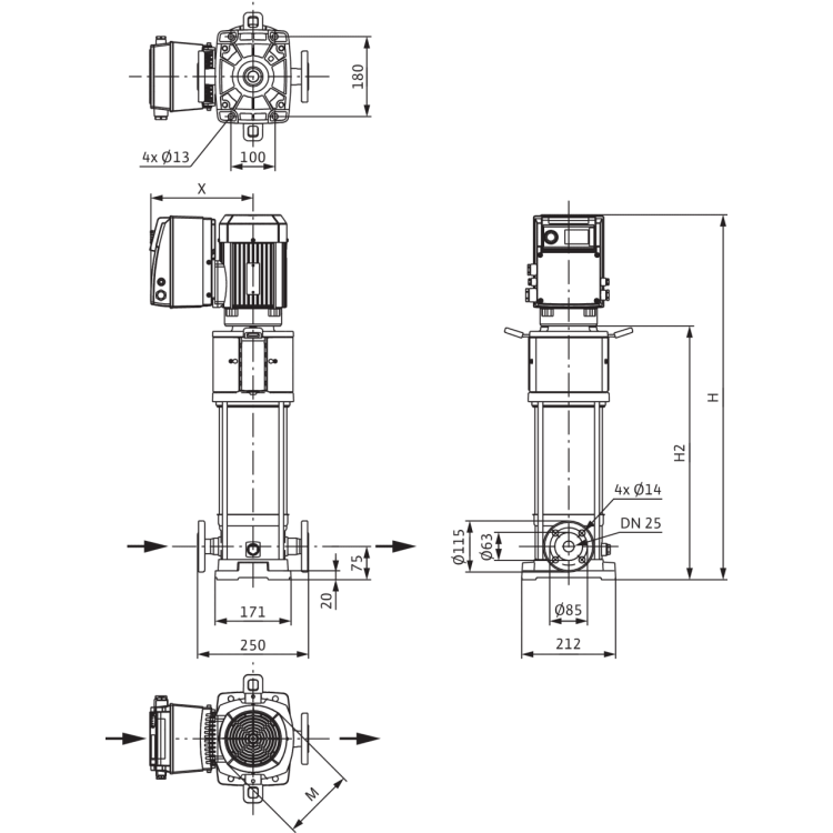 Высокоэффективный высоконапорный центробежный насос вертикального исполнения с линейными подсоединениями, электродвигателем IEC уровня IE4 и интегрированным частотным преобразователем с воздушным охлаждением. Интегрированный частотный преобразователь позволяет осуществлять регулирование частоты вращения, давления и ПИД-регулирование.