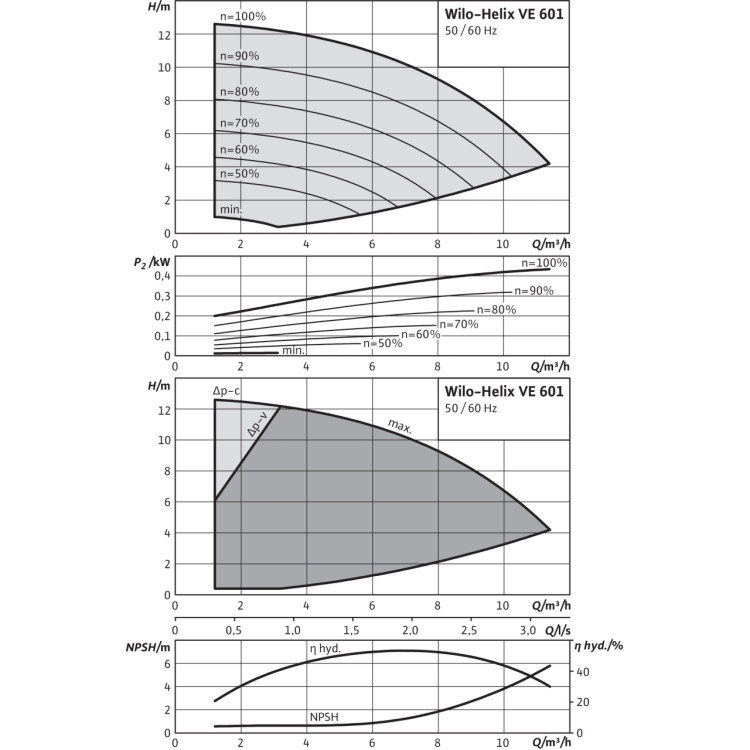 Общие указания – директивы ErP (экологический дизайн) Базовое значение MEI для насосов с оптимальным КПД ≥ 0,70.КПД насоса с откорректированным рабочим колесом, как правило, ниже КПД насоса с полным диаметром рабочего колеса. За счет корректировки рабочего колеса насос настраивается на определенную рабочую точку, в результате чего снижается энергопотребление. Индекс минимальной эффективности (MEI) относится к полному диаметру рабочего колеса.При различных рабочих точках данный насос может работать эффективнее и экономичнее, если, например, управление его работой осуществляется путем регулирования переменной частоты вращения, благодаря которому насос адаптируется к характеристикам соответствующей системы.Информацию по базовому значению эффективности см. на интернет-странице www.europump.org/efficiencycharts.На насосы, потребляющие мощность > 150 кВт, или имеющие подачу QBEP < 6 м3/ч, не распространяются требования по экологическому проектированию водяных насосов. Поэтому значение MEI не указывается. |
