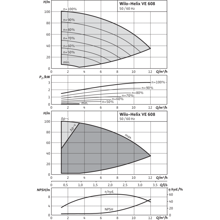 Общие указания – директивы ErP (экологический дизайн) Базовое значение MEI для насосов с оптимальным КПД ≥ 0,70.КПД насоса с откорректированным рабочим колесом, как правило, ниже КПД насоса с полным диаметром рабочего колеса. За счет корректировки рабочего колеса насос настраивается на определенную рабочую точку, в результате чего снижается энергопотребление. Индекс минимальной эффективности (MEI) относится к полному диаметру рабочего колеса.При различных рабочих точках данный насос может работать эффективнее и экономичнее, если, например, управление его работой осуществляется путем регулирования переменной частоты вращения, благодаря которому насос адаптируется к характеристикам соответствующей системы.Информацию по базовому значению эффективности см. на интернет-странице www.europump.org/efficiencycharts.На насосы, потребляющие мощность > 150 кВт, или имеющие подачу QBEP < 6 м3/ч, не распространяются требования по экологическому проектированию водяных насосов. Поэтому значение MEI не указывается. |