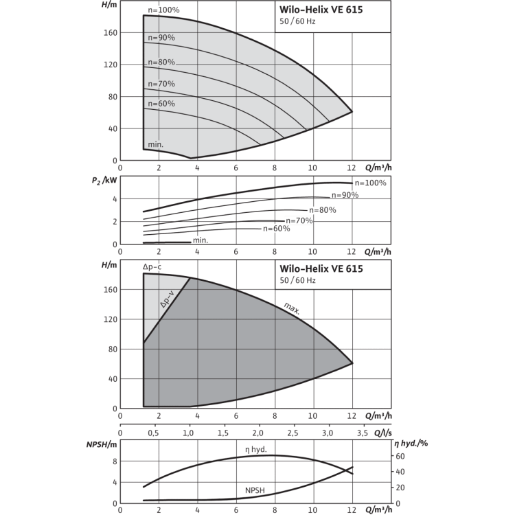 Общие указания – директивы ErP (экологический дизайн) Базовое значение MEI для насосов с оптимальным КПД ≥ 0,70.КПД насоса с откорректированным рабочим колесом, как правило, ниже КПД насоса с полным диаметром рабочего колеса. За счет корректировки рабочего колеса насос настраивается на определенную рабочую точку, в результате чего снижается энергопотребление. Индекс минимальной эффективности (MEI) относится к полному диаметру рабочего колеса.При различных рабочих точках данный насос может работать эффективнее и экономичнее, если, например, управление его работой осуществляется путем регулирования переменной частоты вращения, благодаря которому насос адаптируется к характеристикам соответствующей системы.Информацию по базовому значению эффективности см. на интернет-странице www.europump.org/efficiencycharts.На насосы, потребляющие мощность > 150 кВт, или имеющие подачу QBEP < 6 м3/ч, не распространяются требования по экологическому проектированию водяных насосов. Поэтому значение MEI не указывается. |