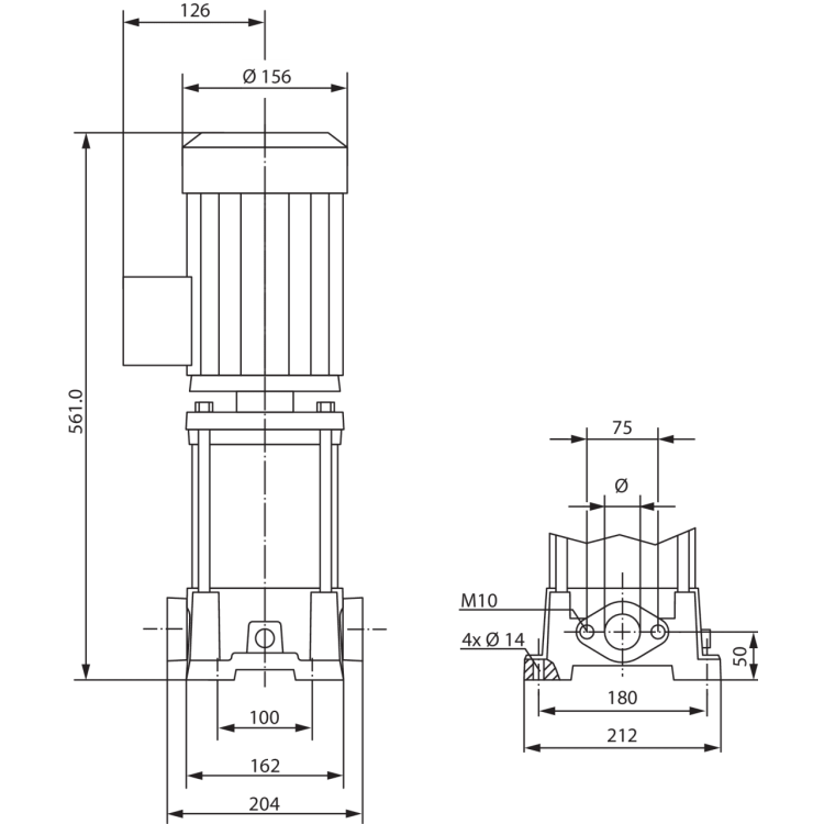 Данный насос имеет компактную конструкцию и оснащен сквозным насосным валом электродвигателя и не зависящим от направления вращения скользящим торцовым уплотнением. Секции, рабочие и ведущие колеса выполнены из нержавеющей стали. Корпус насоса выполнен из чугуна с катафорезным покрытием с подсоединениями под овальный фланец.